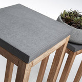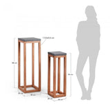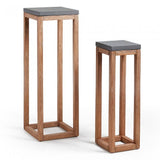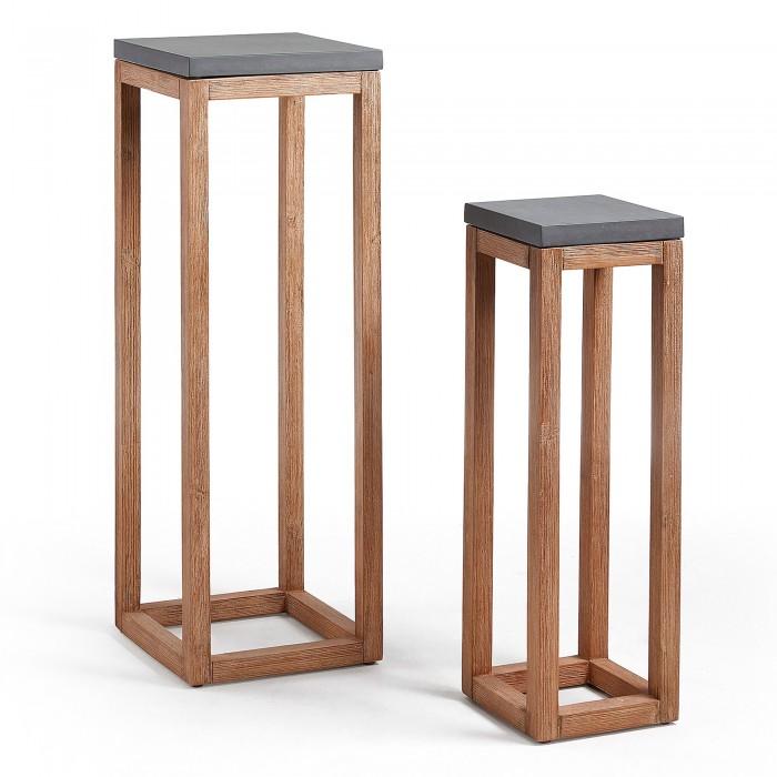 Set de 2 pedestales con estructura de madera de acacia maciza y sobre en cemento. Para uso interior y exterior bajo techo.