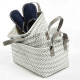 Set de 3 cestas de polipropileno trenzado con asas en piel sintética.