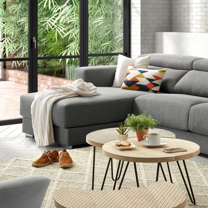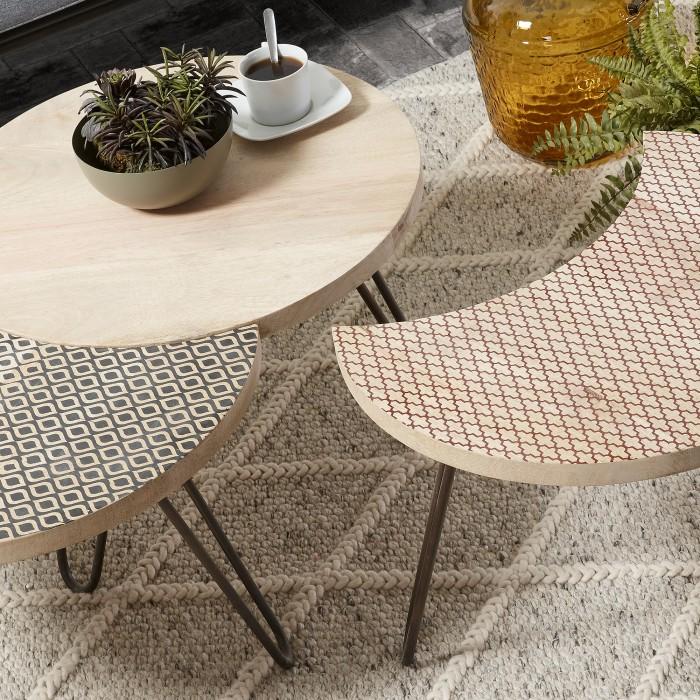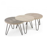 Set de 3 mesas de centro modulares, en madera de mango maciza y pies de metal.