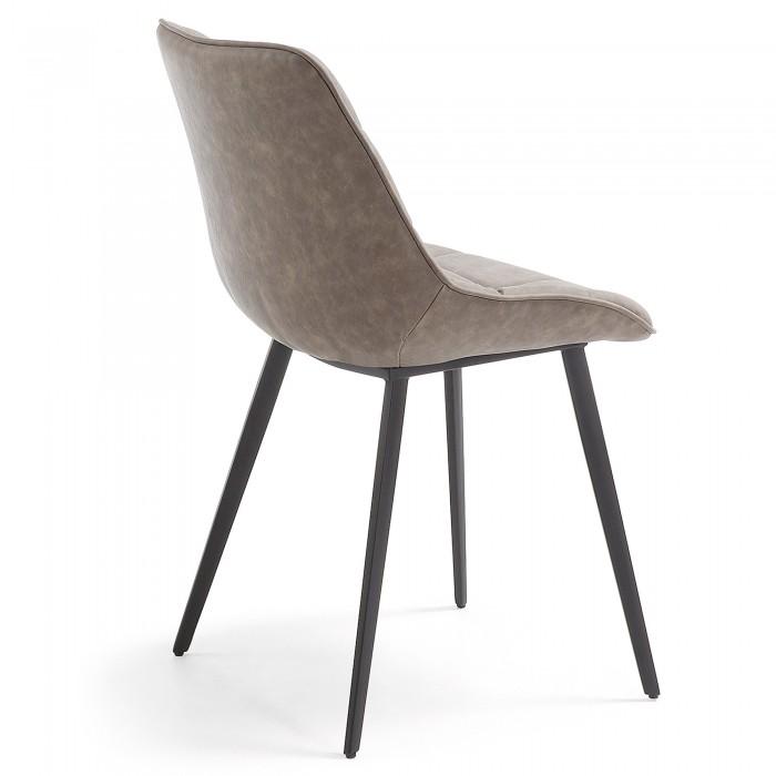 Silla tapizada en piel sintética. Pies en acero pintado por pulverización.