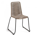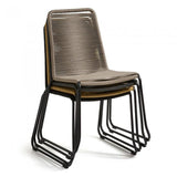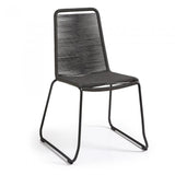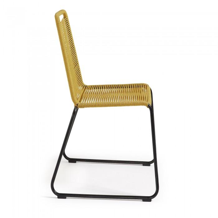 Silla con estructura en acero galvanizado pintado por pulverización. Asiento y respaldo en cuerda de poliester resistente a los rayos UV. Apilable. Para uso interior y exterior bajo techo.