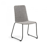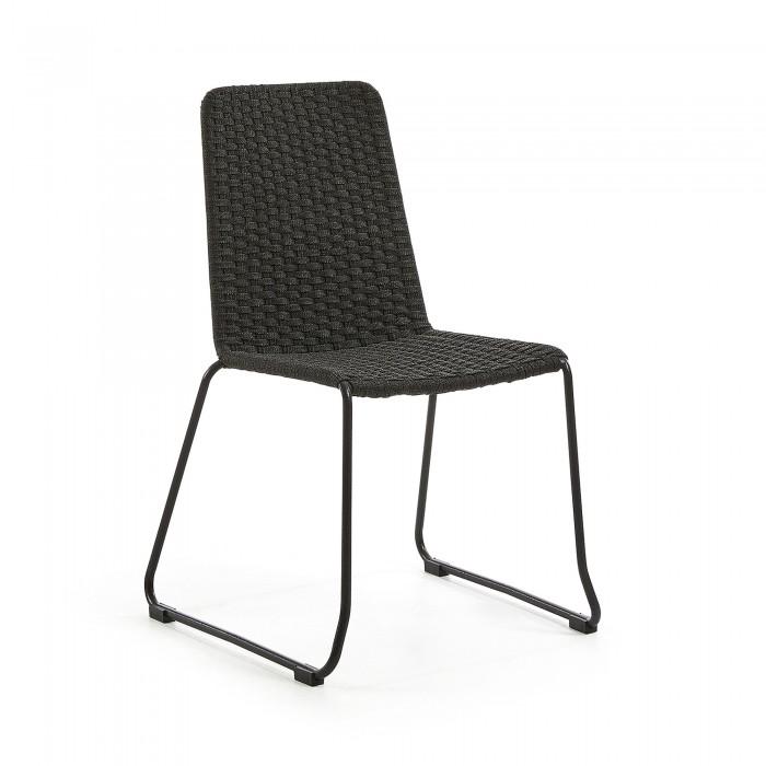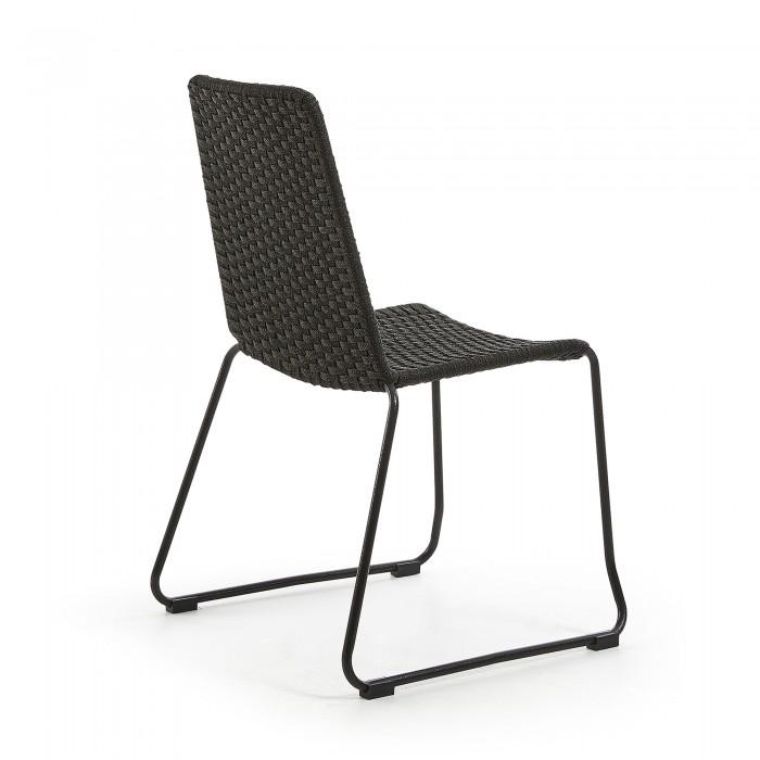 Silla con estructura en acero galvanizado pintado por pulverización. Asiento y respaldo en cuerda de poliester resistente a los rayos UV. Apilable. Para uso interior y exterior bajo techo.
