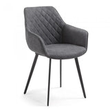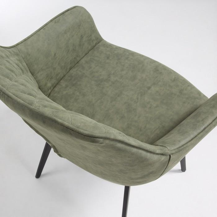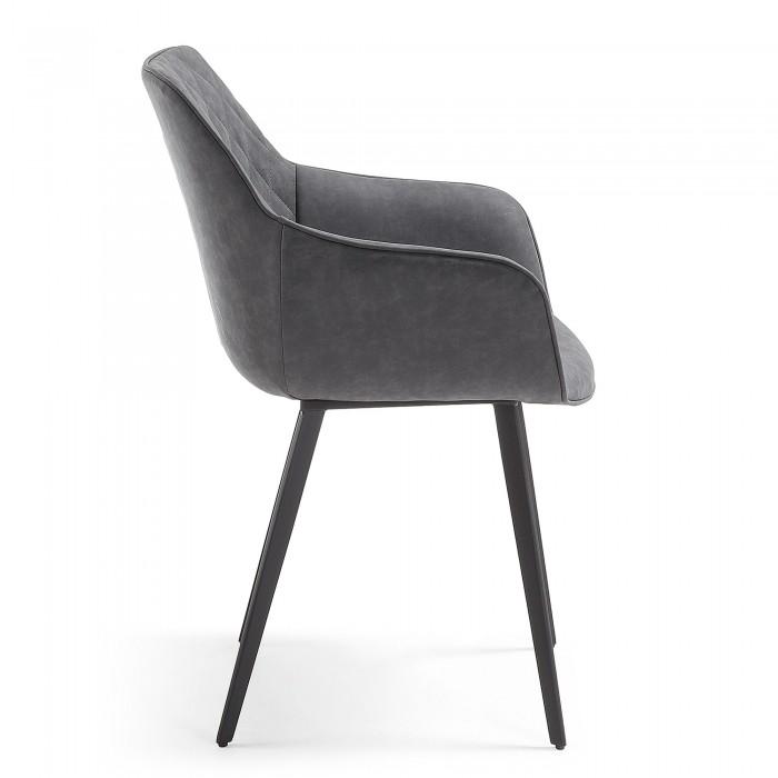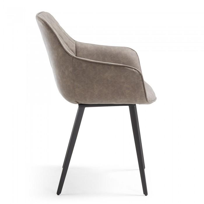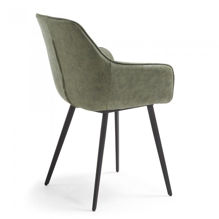 Silla con brazos tapizada en piel sintética. Pies en acero pintado por pulverización.