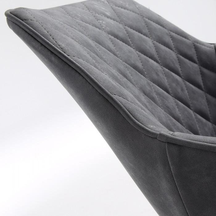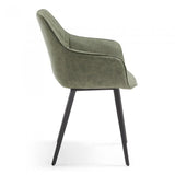 La silla Amira, con pies de acero, destaca por su acolchado en piel sintética. Está disponible en tres colores: grafito, verde oscuro y marrón oscuro, para encajar a la perfección en tus interiores.