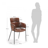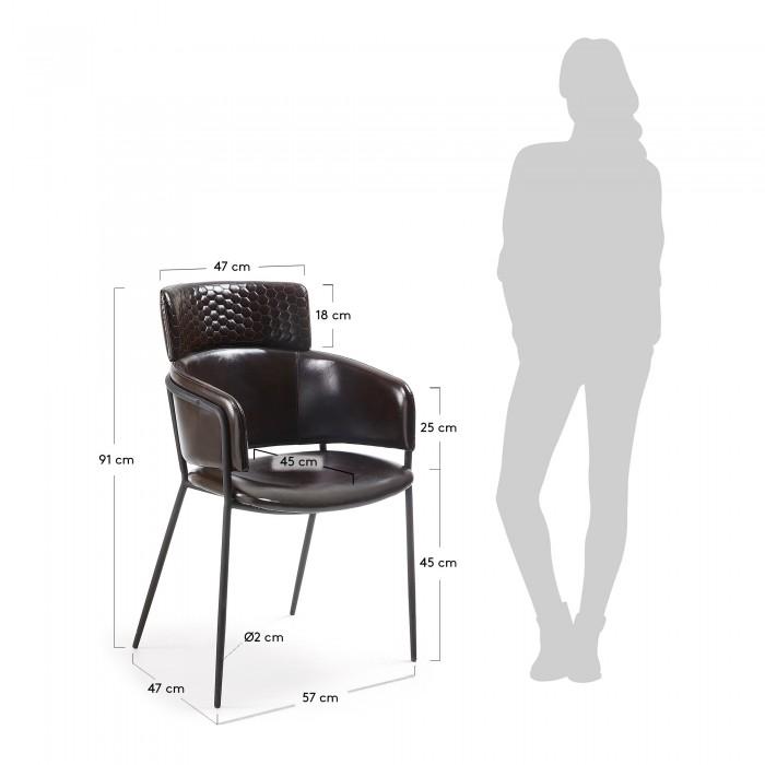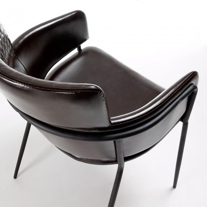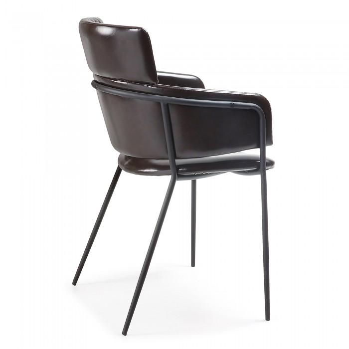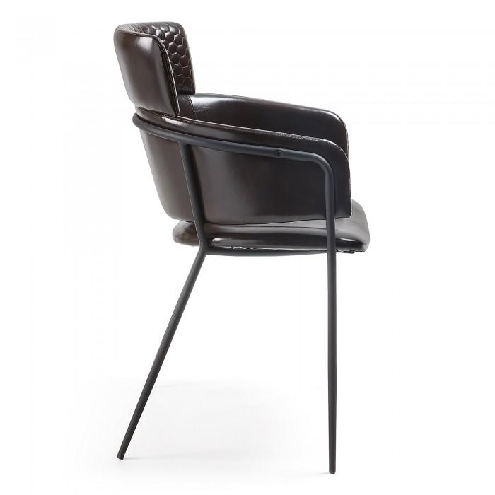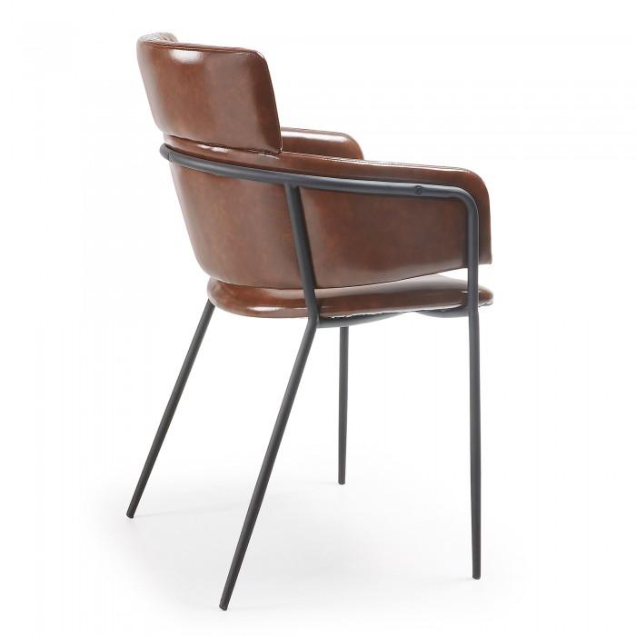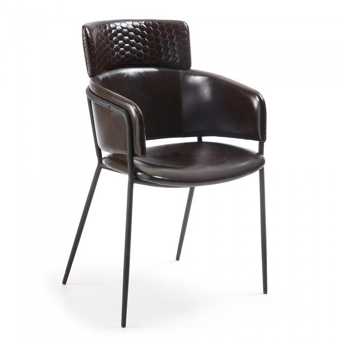 Silla con brazos tapizada en piel sintética. Apoyacabezas acolchado. Pies en acero pintado por pulverización.