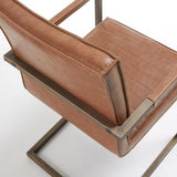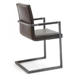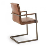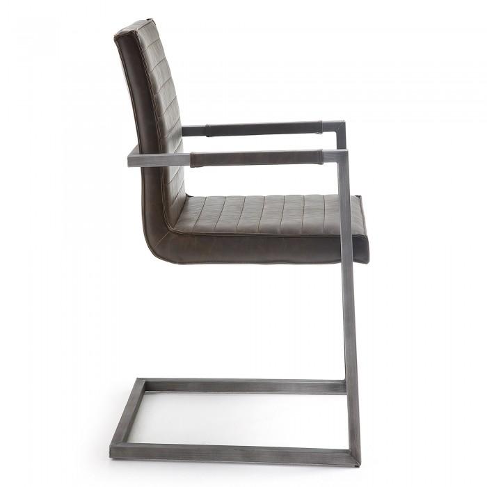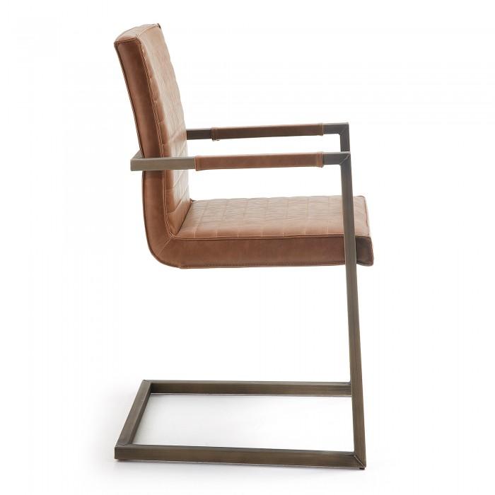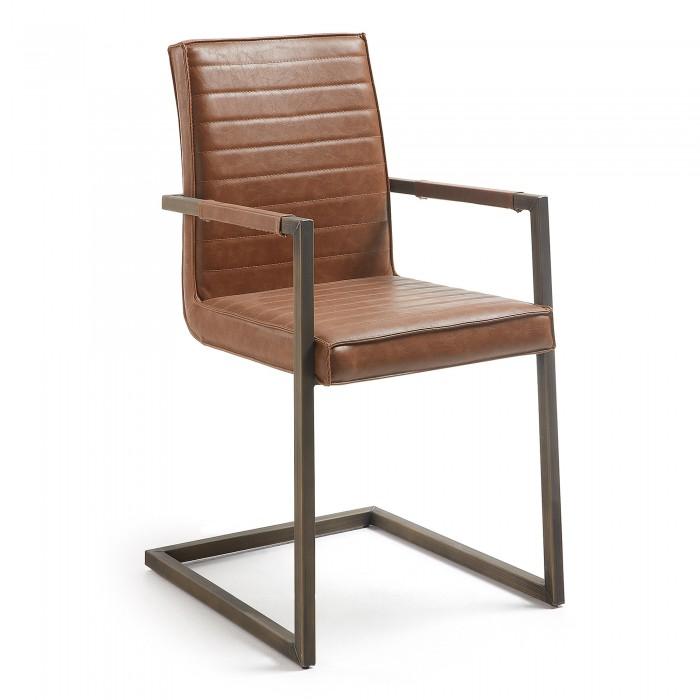 Silla con brazos tapizada en piel sintética. Pies en acero pintado por pulverización.