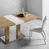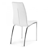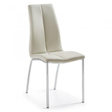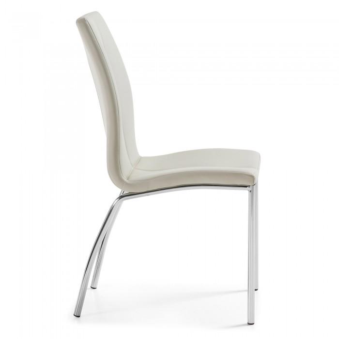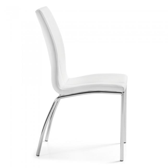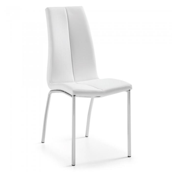 Silla tapizada en piel sintética. Pies en acero cromado.