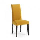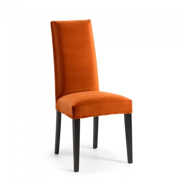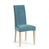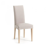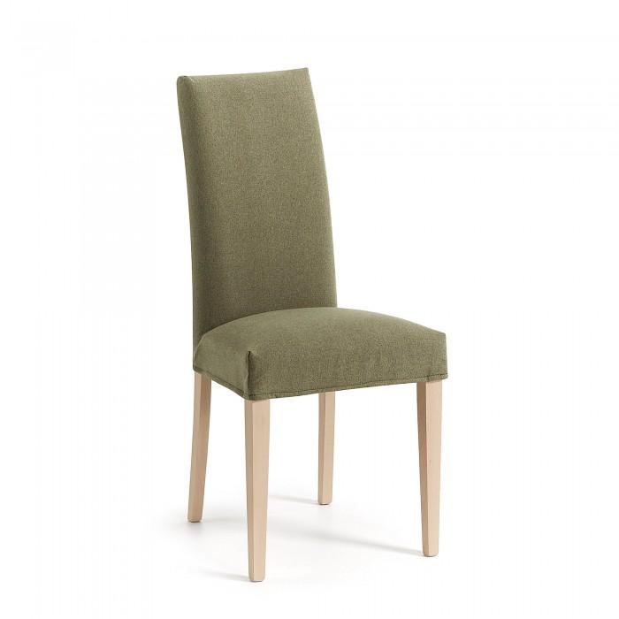 Silla tapizada en tela Bulova con tratamiento Teflon antimanchas, desenfundable y patas de madera maciza de haya pintada.