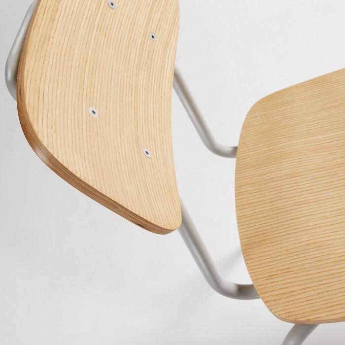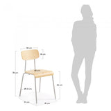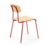 Silla con asiento y respaldo en madera contrachapada natural. Estructura en metal pintado.