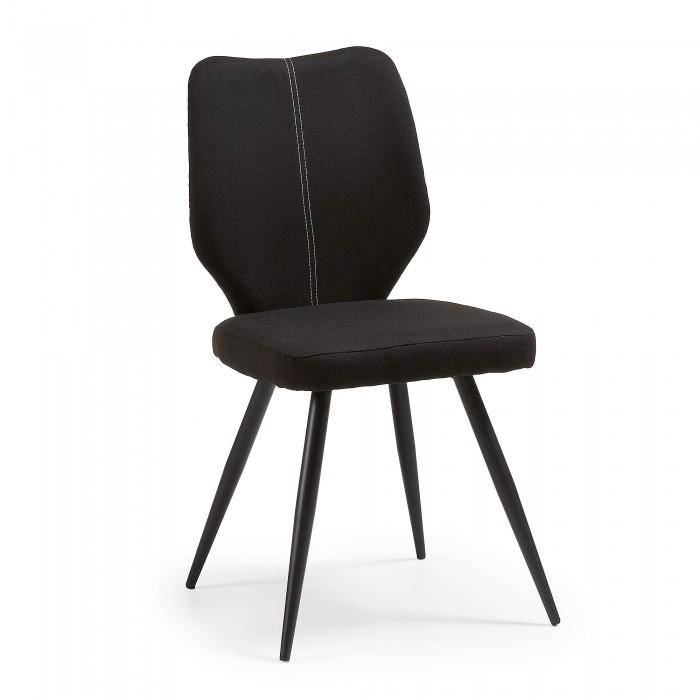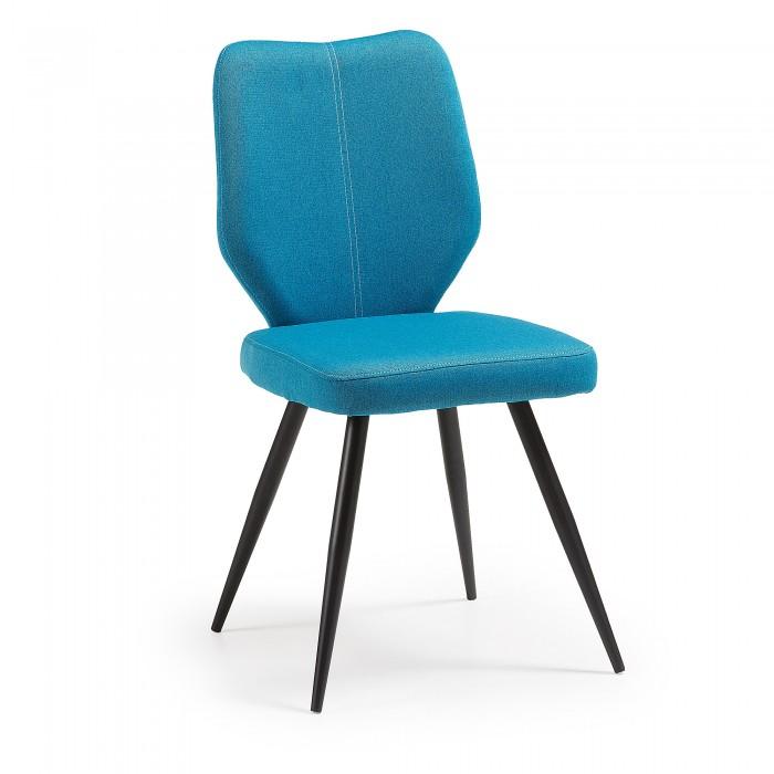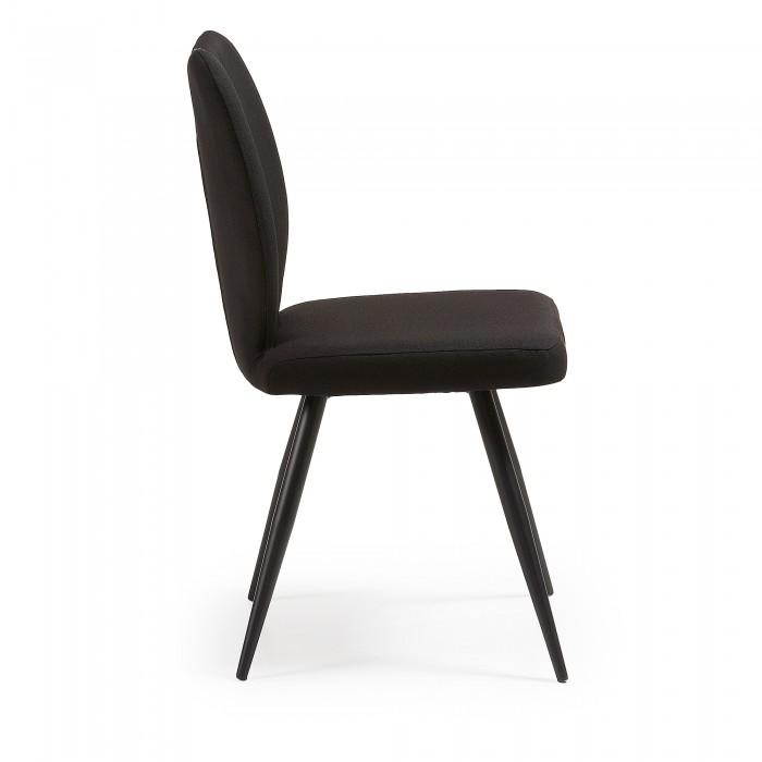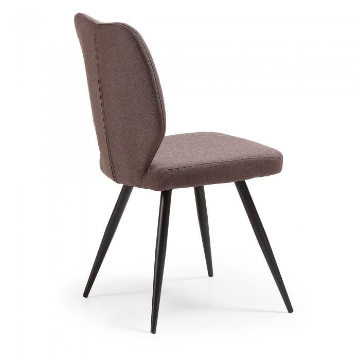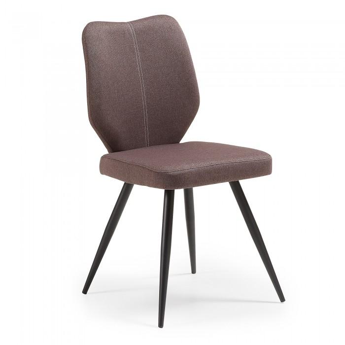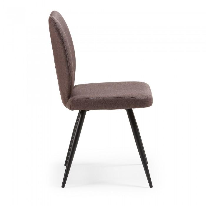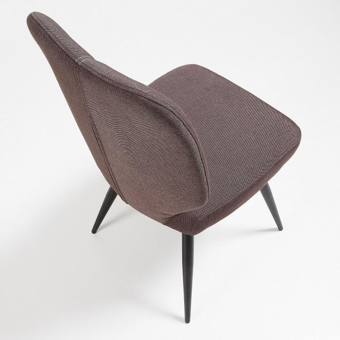 Silla tapizada en tela. Pies de metal en acabado epoxy.