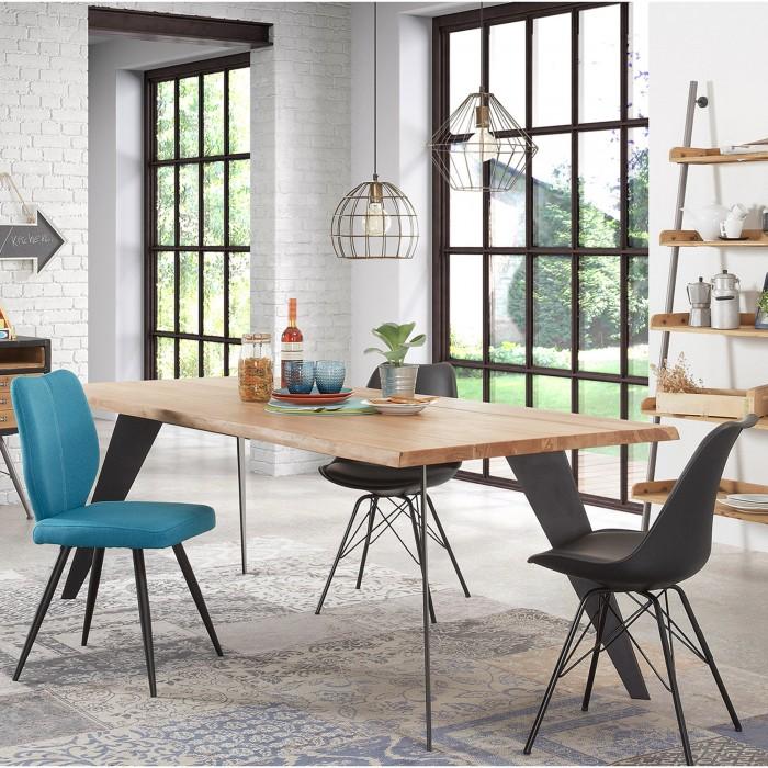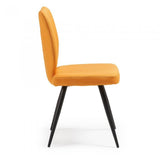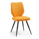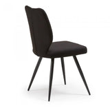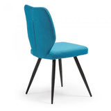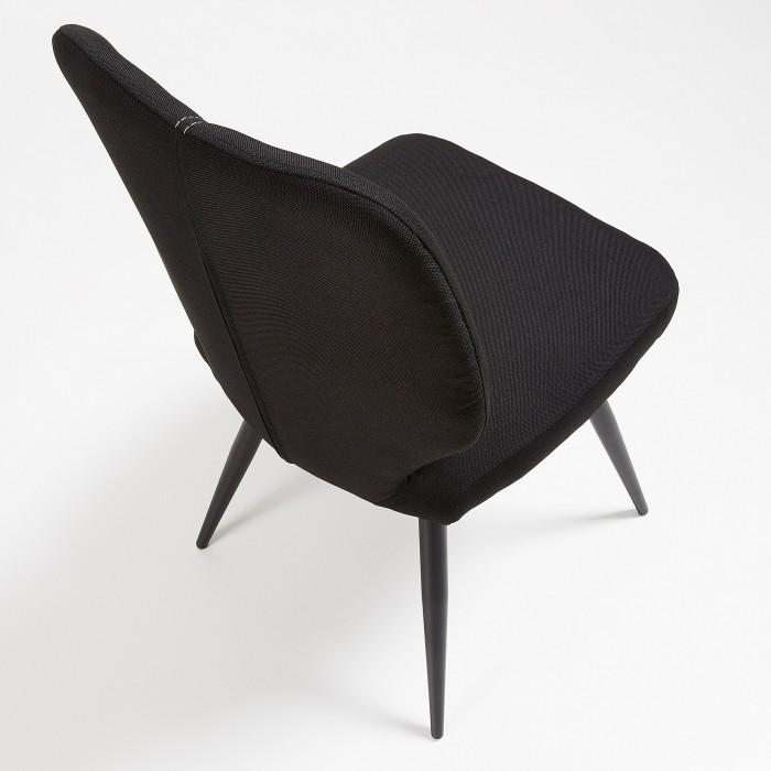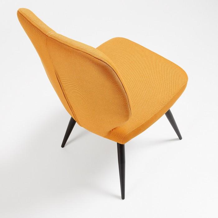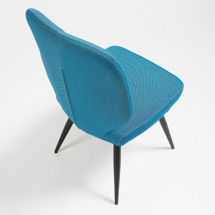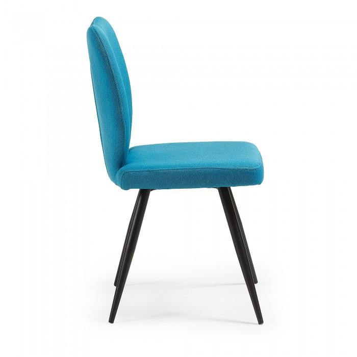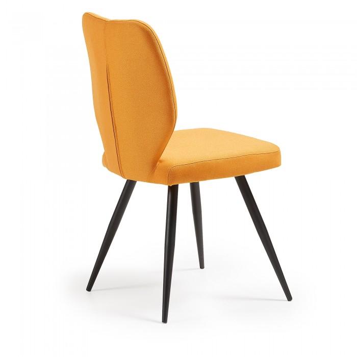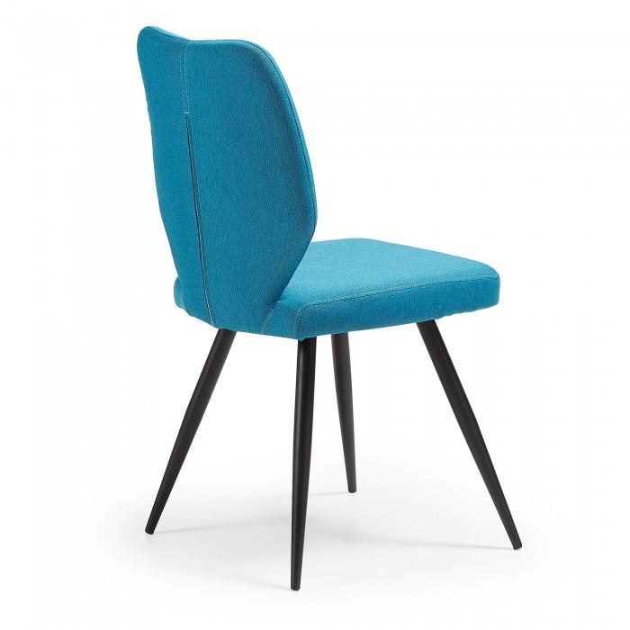 Silla tapizada en tela. Pies de metal en acabado epoxy.