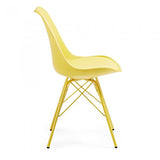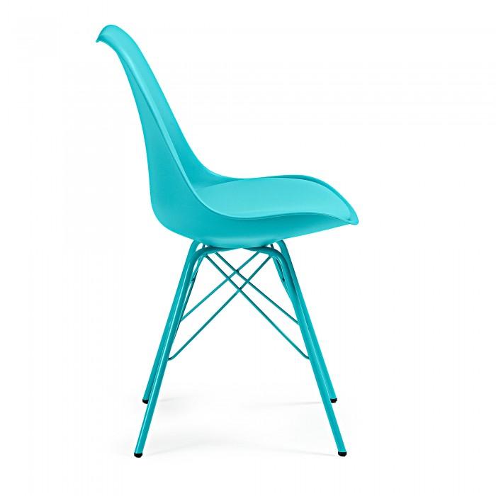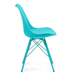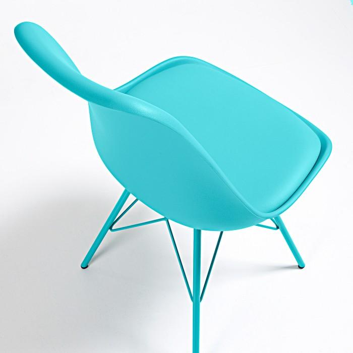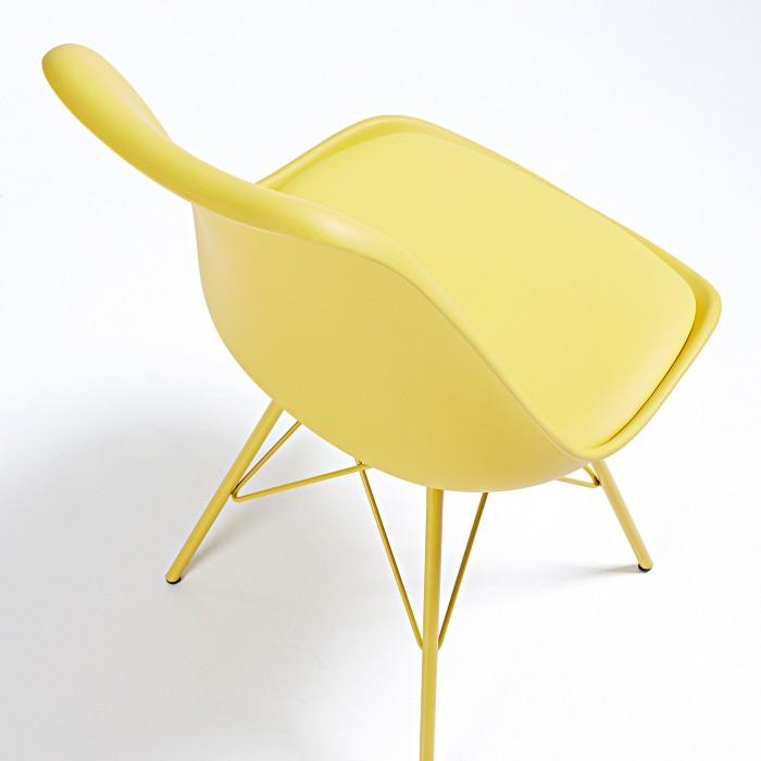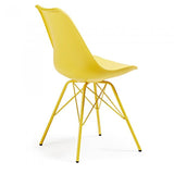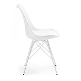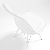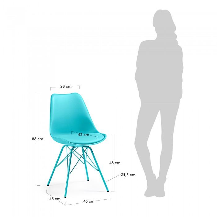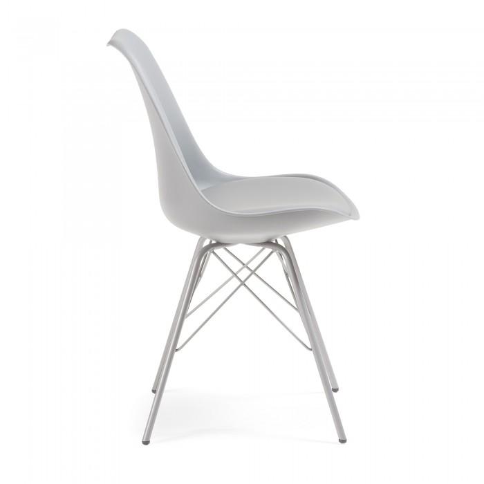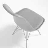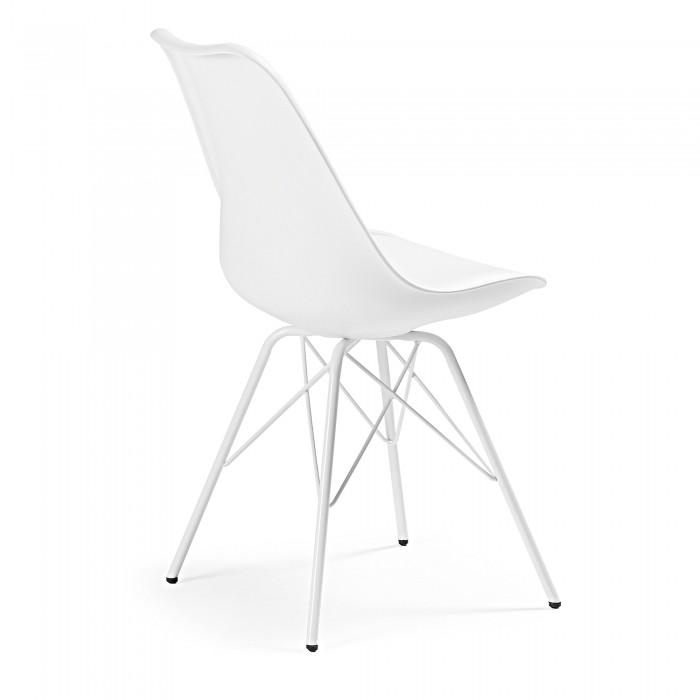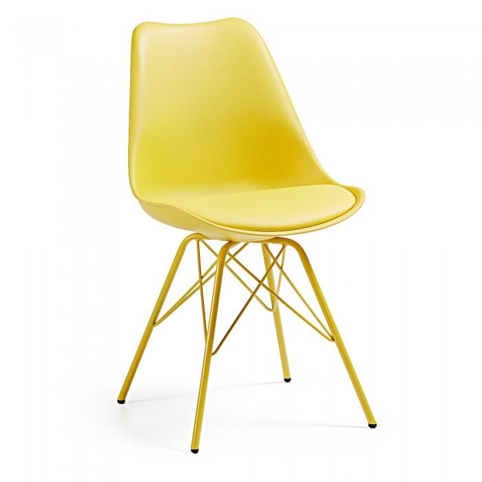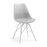 Silla de polipropileno con asiento tapizado en piel sintética. Pies de acero pintado epoxy.