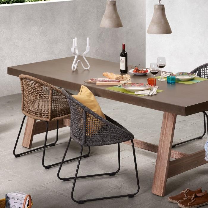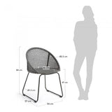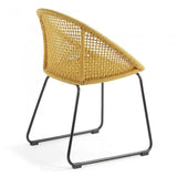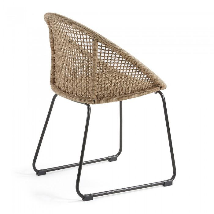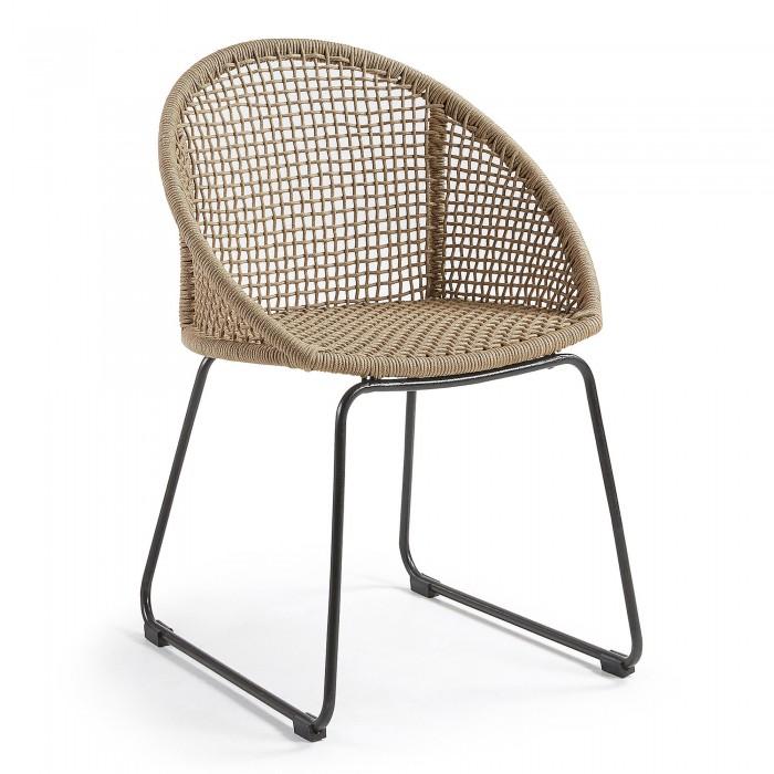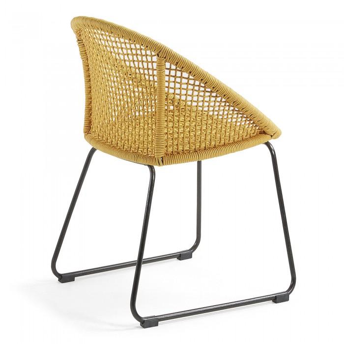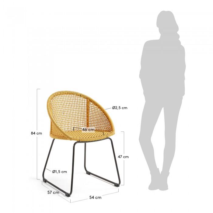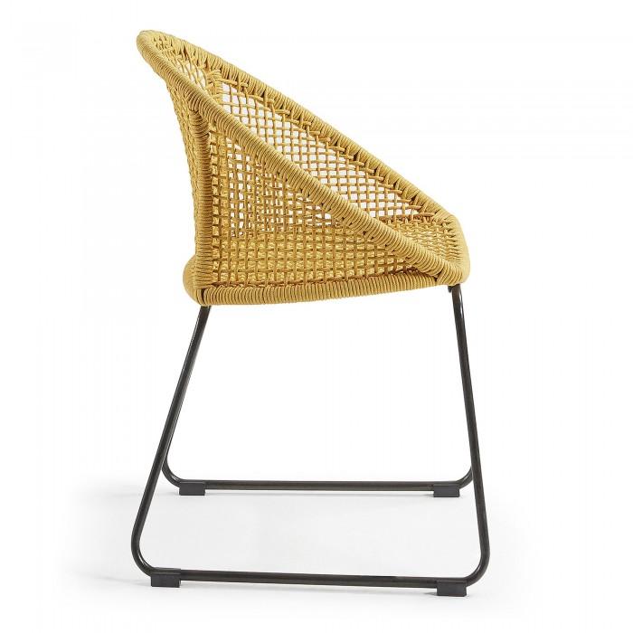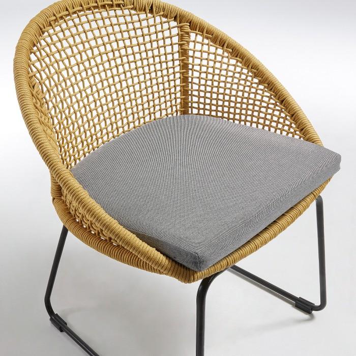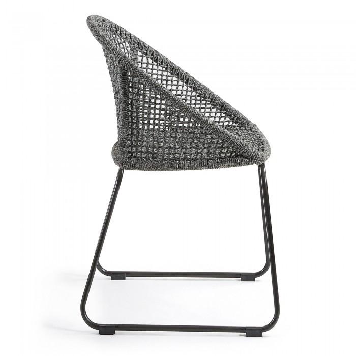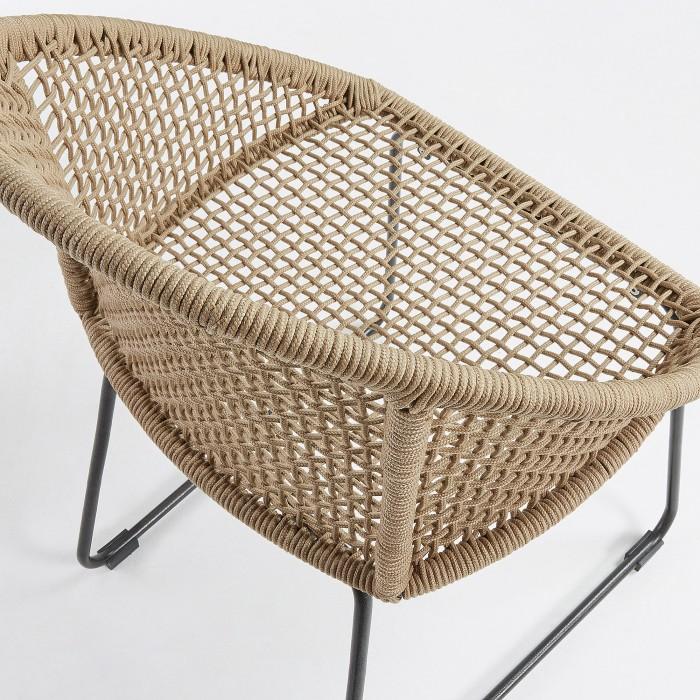 Silla con brazos. Estructura en acero galvanizado pintado por pulverización. Asiento y respaldo en cuerda de poliester resistente a los rayos UV. Para uso interior y exterior bajo techo.
