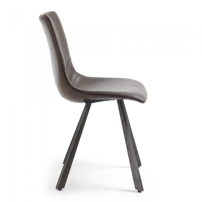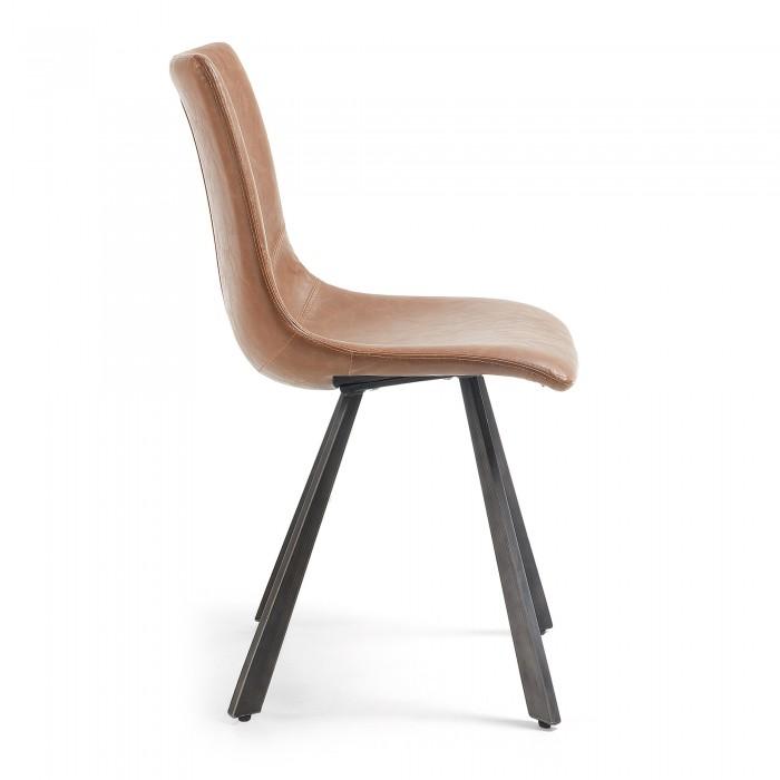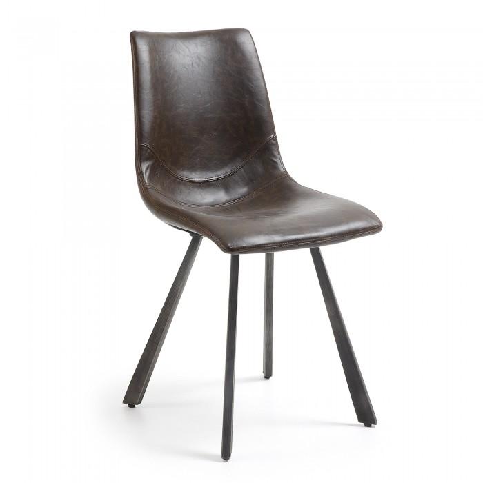 Silla tapizada en piel sintética. Pies en acero pintado por pulverización.