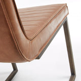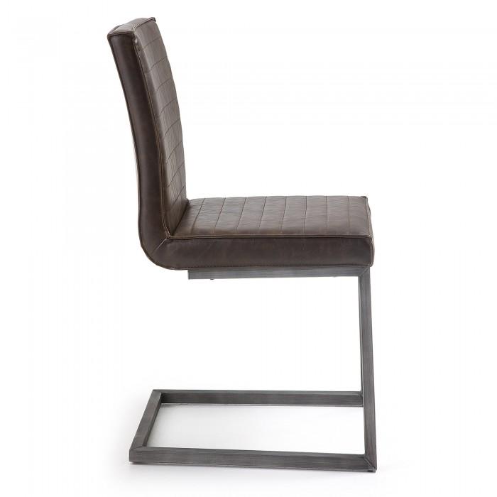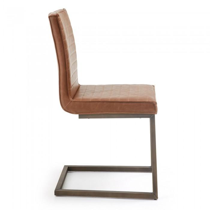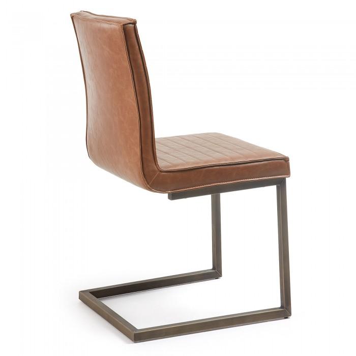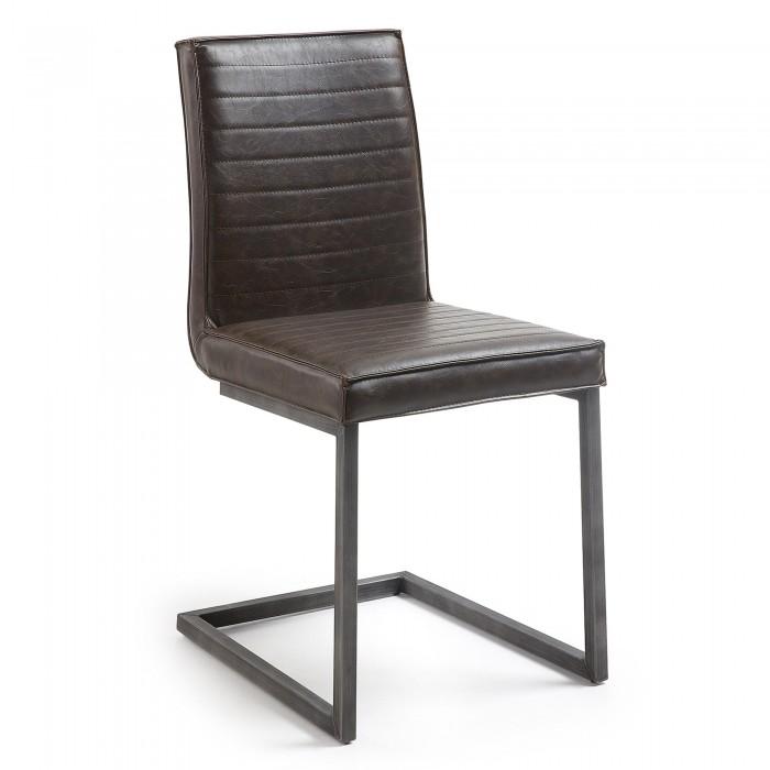 Esta silla destaca por su estructura en acero, que se sujeta el respaldo acolchado en piel sintética y se apoya en el suelo con las patas en forma de L. Una silla original en su conjunto a la par que versátil, ya que se adapta con facilidad en cualquier espacio.