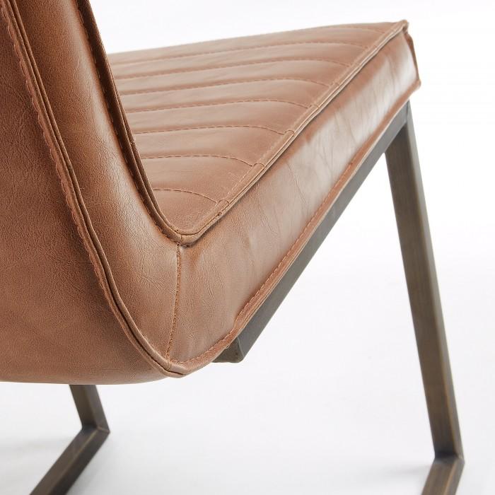 Silla tapizada en piel sintética. Pies en acero pintado por pulverización.