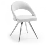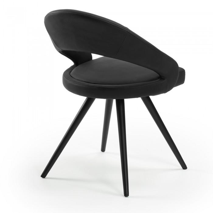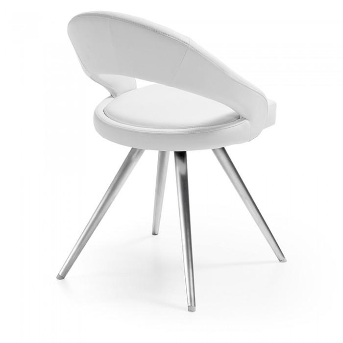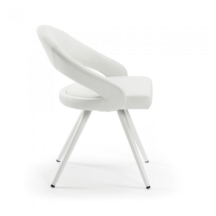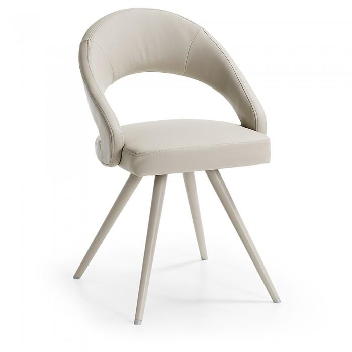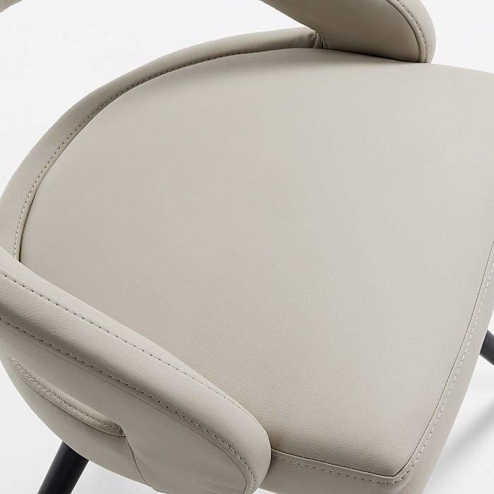 Silla tapizada en piel sintética color pespunteada. Pies de acero pintado en epoxy color perla.