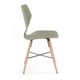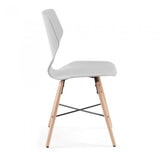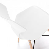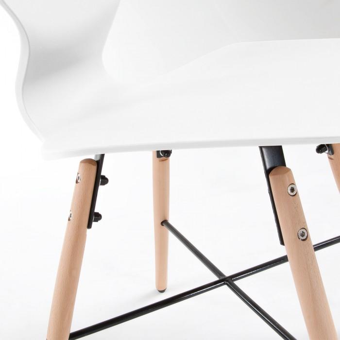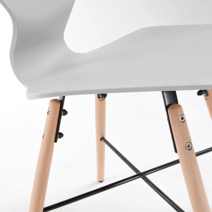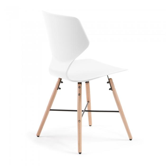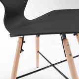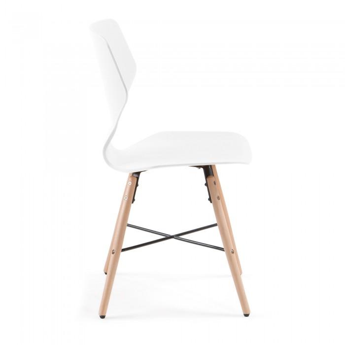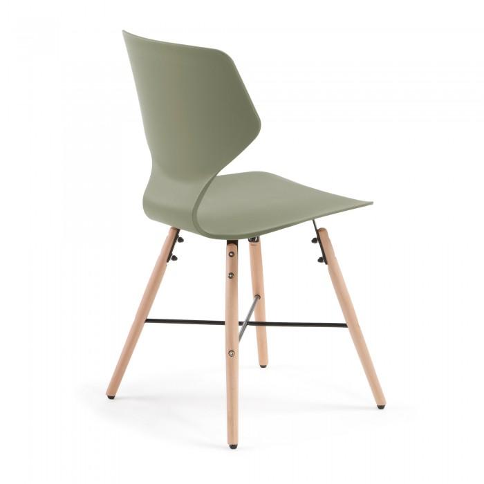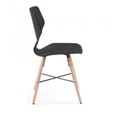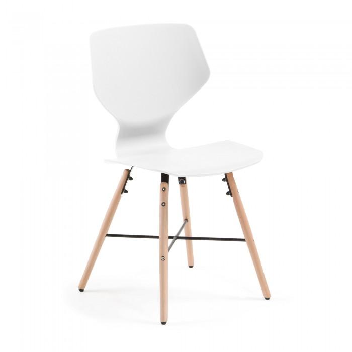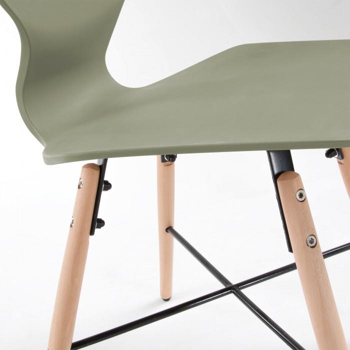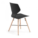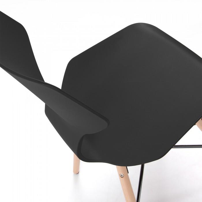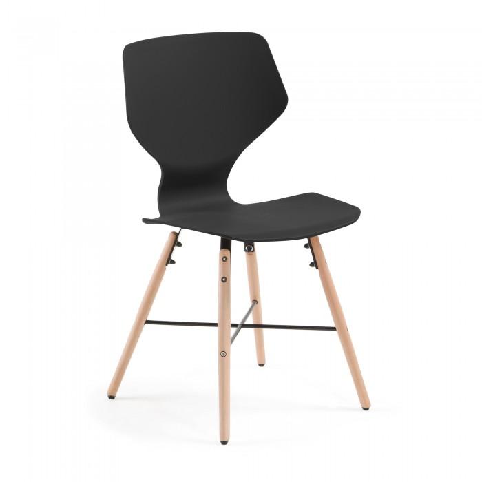 Silla de polipropileno. Pies en madera maciza de haya con cruz negra de metal.