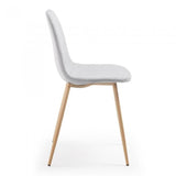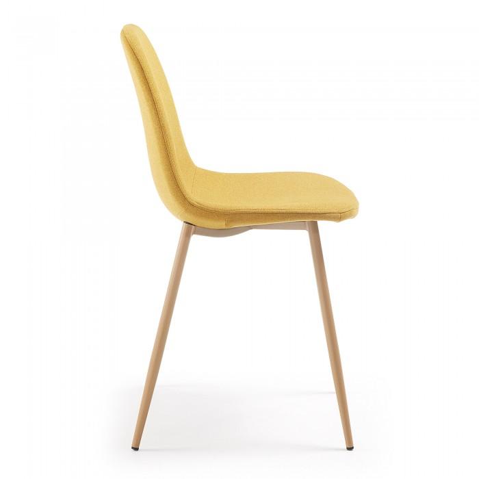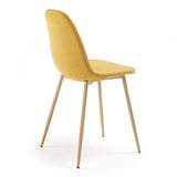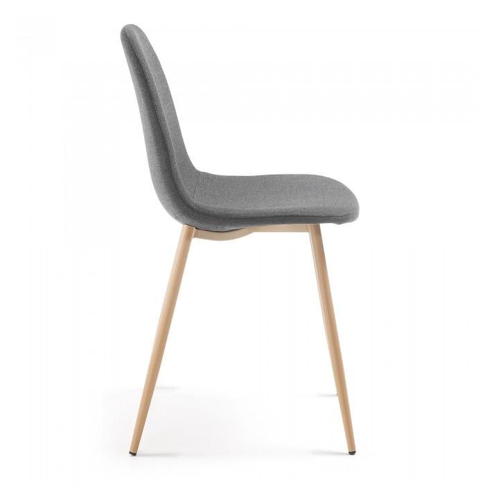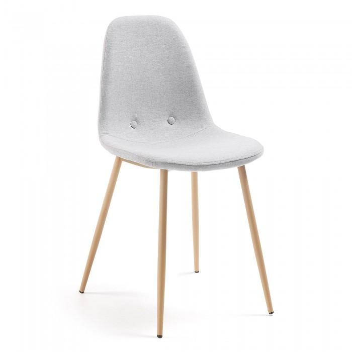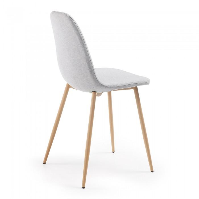 Silla con asiento tapizado en tela. Pies en acero efecto madera de haya.