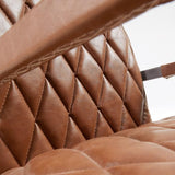 La estructura en acero de esta silla hace de sujeción al suelo a la par que se transforma en un cómodo reposabrazos. Además, está acolchada y tapizada en piel sintética con el clásico estampado a rombos, también conocido como checker.