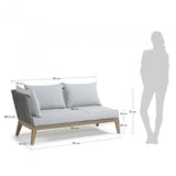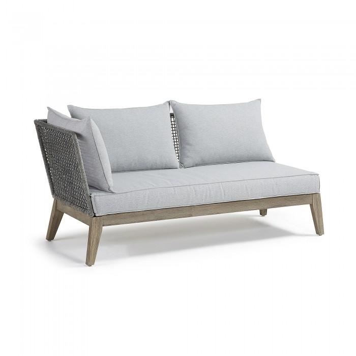 Sofá modular de 3 plazas con estructura de acacia maciza. Tratamiento Nano Oil PNZ para larga durabilidad y protección UV. Respaldo en cuerda de poliester resistente a los rayos UV. Cojines incluidos. Para uso interior y exterior bajo techo.
