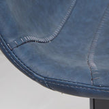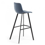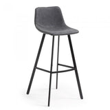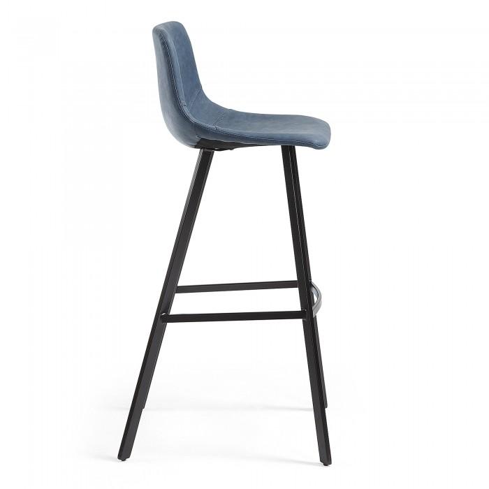 El taburete Alve, con pies de acero, destaca por su tapizado en piel sintética. Está disponible en tres colores: grafito, azul oscuro y marrón oscuro, para encajar a la perfección en tus interiores.