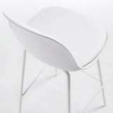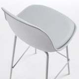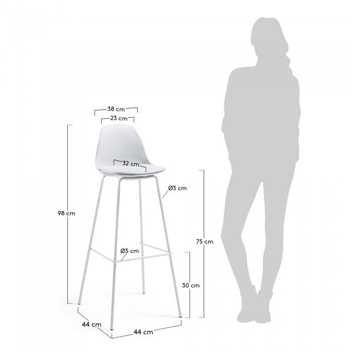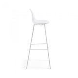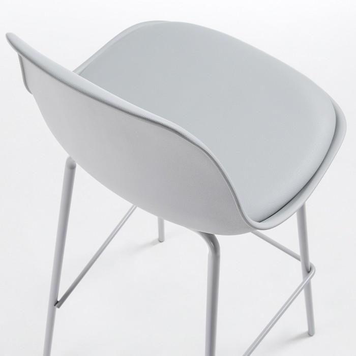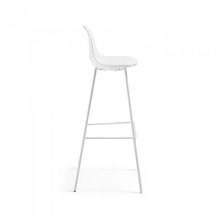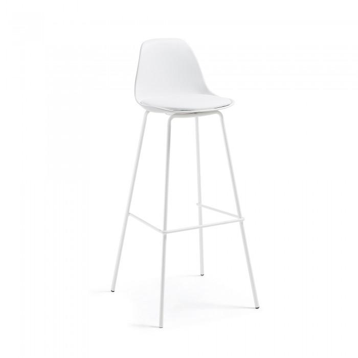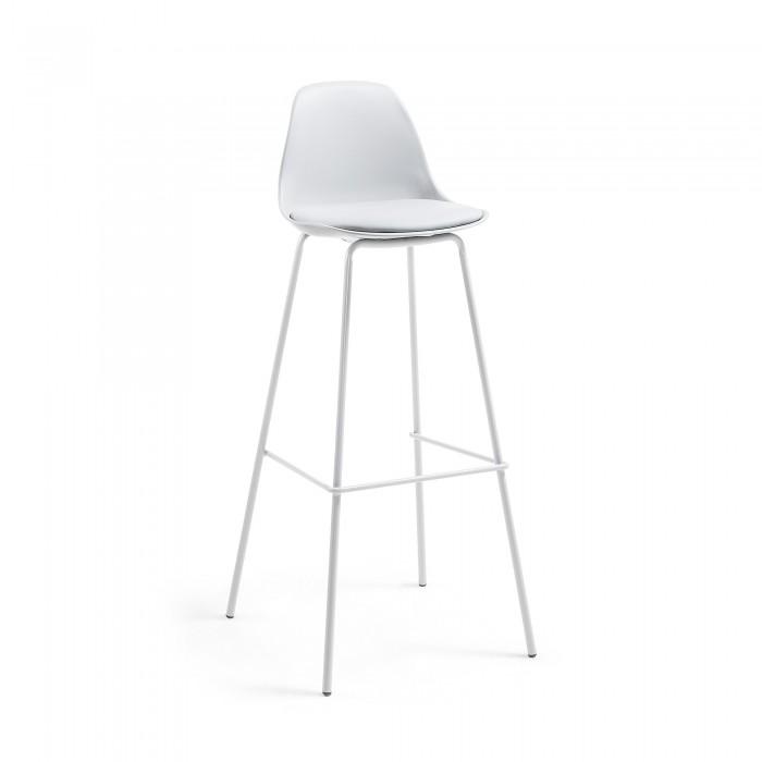 Taburete alto con asiento de polipropileno. Cojín en piel sintética. Pies de metal pintado.