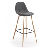Taburete alto con asiento tapizado en tela. Pies en acero efecto madera de haya.
