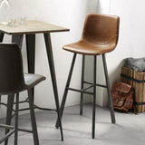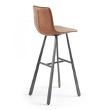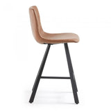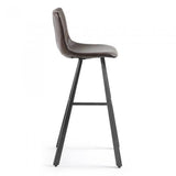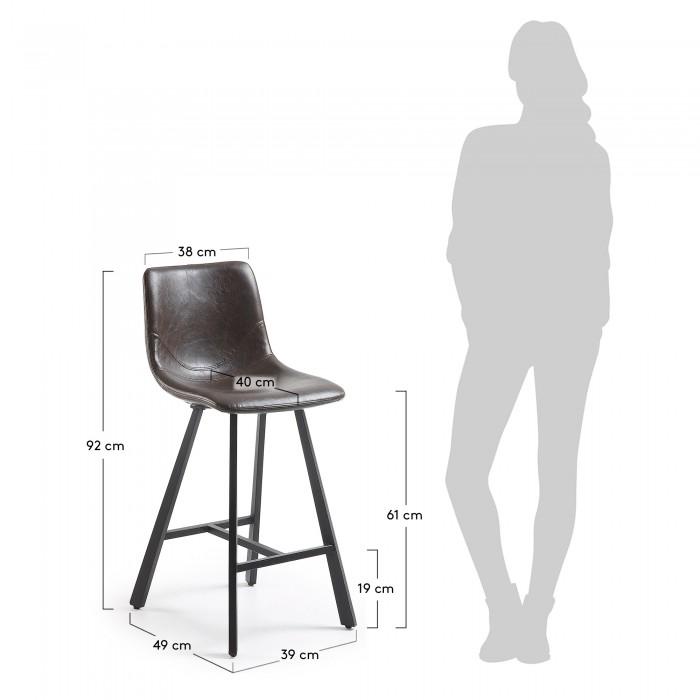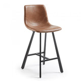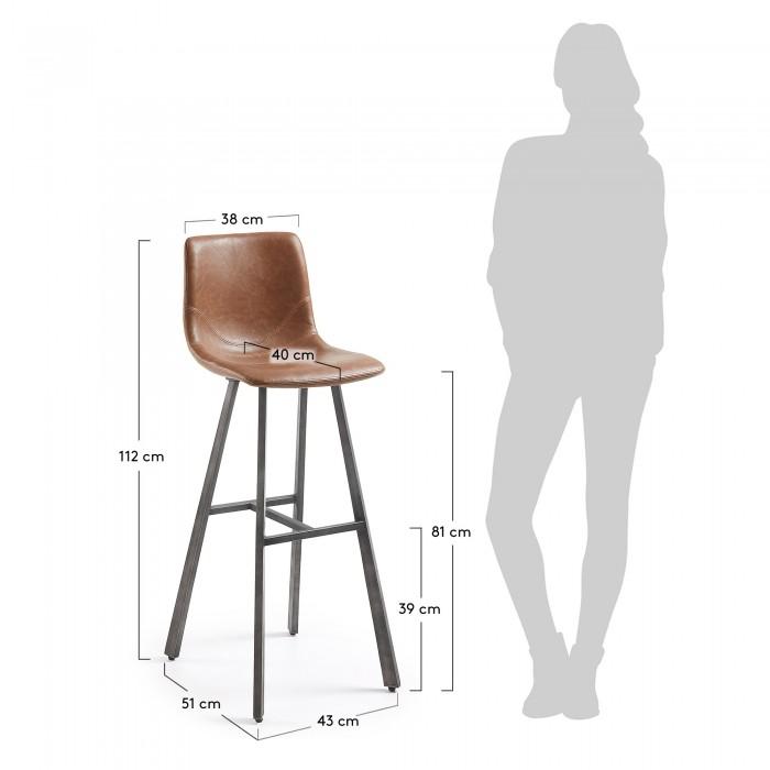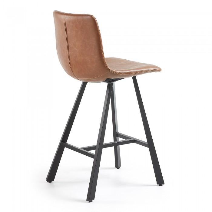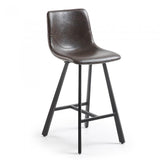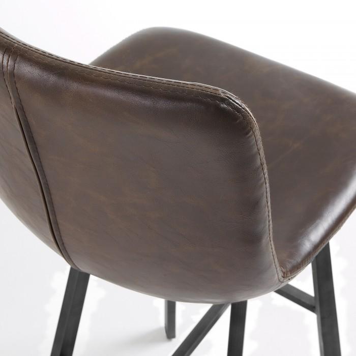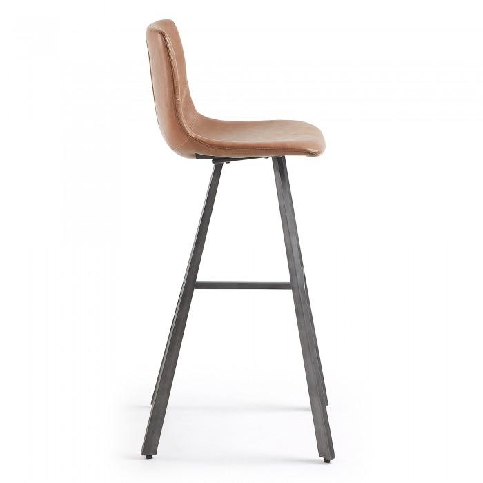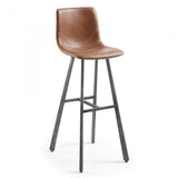 Taburete alto tapizado en piel sintética. Pies en acero pintado por pulverización.