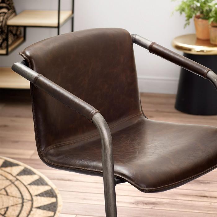 Con sus originales formas y elaborado en acero y piel sintética, este taburete de bar es perfecto para disfrutar de un ambiente distendido, ya que gracias a su respaldo la comodidad está más que asegurada.
