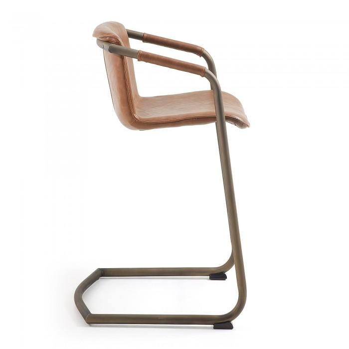 Taburete alto tapizado en piel sintética. Pies en acero pintado por pulverización.
