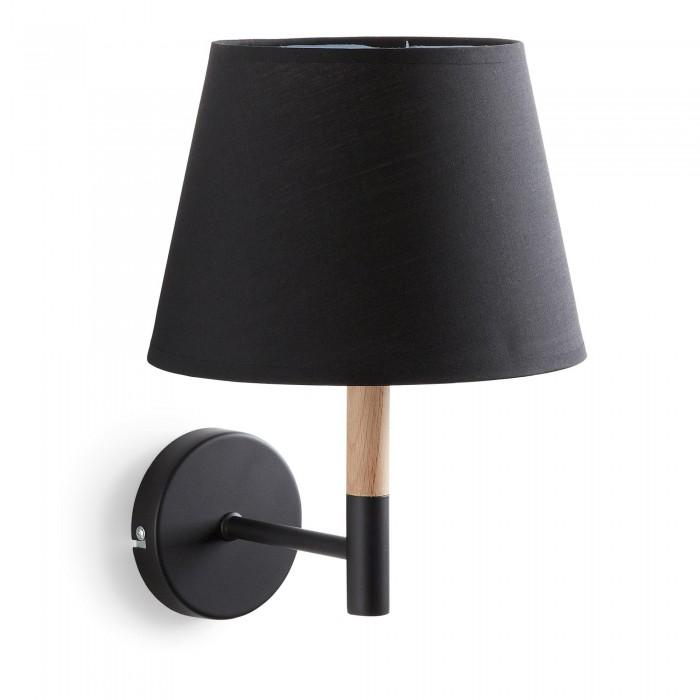 Aplique de pared con brazo de metal y madera. Pantalla de algodón. Para bombilla E14 no incluida.
