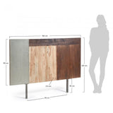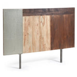 Cabecero con estructura de madera de mango. Frontal con detalles de maderas recuperadas y metal. Pies de metal.