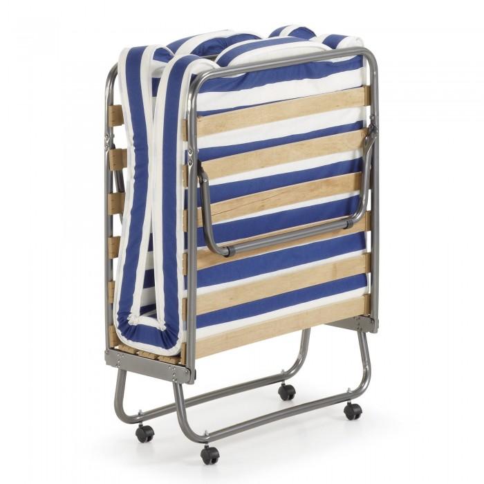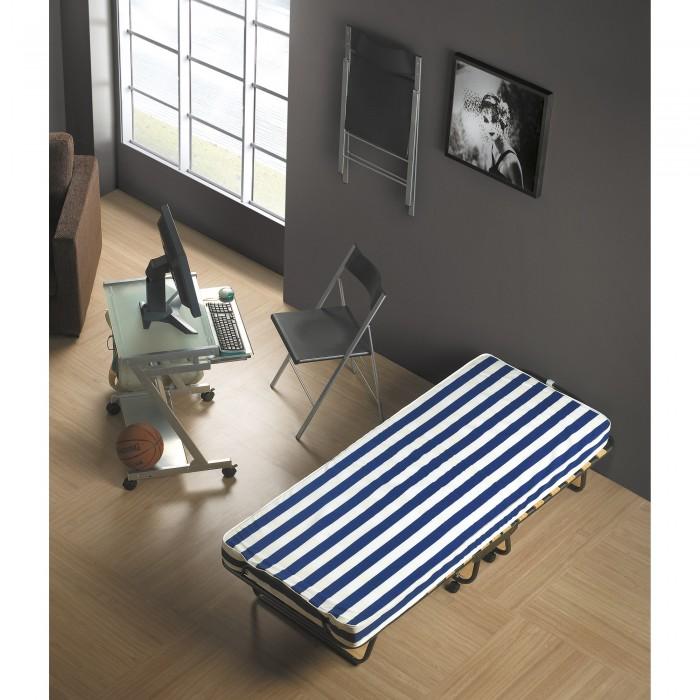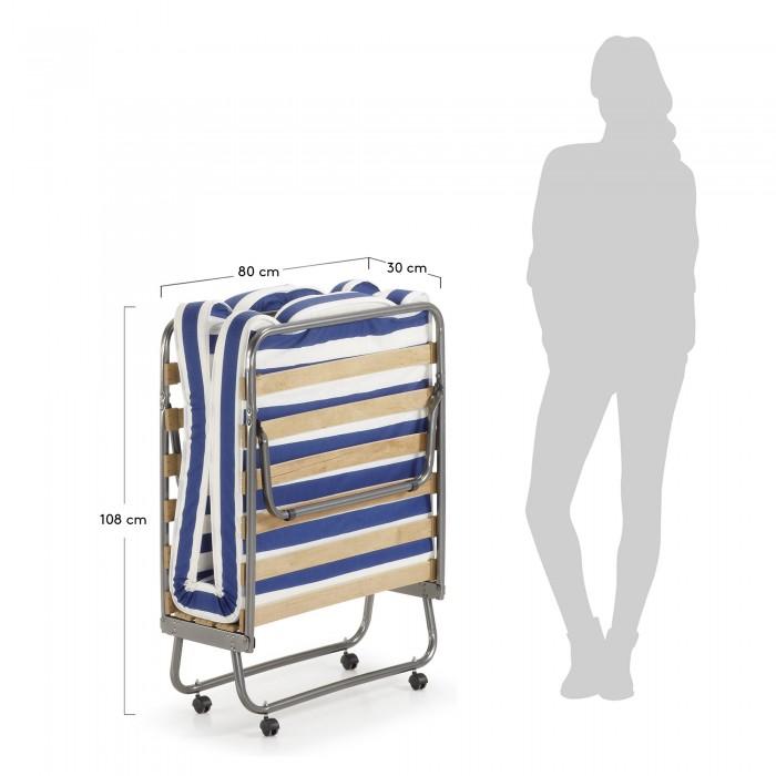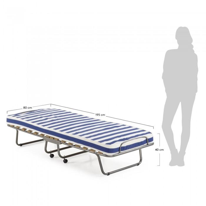 Cama plegable con estructura de metal y láminas de madera. Incluye colchón de 80x190 cm.