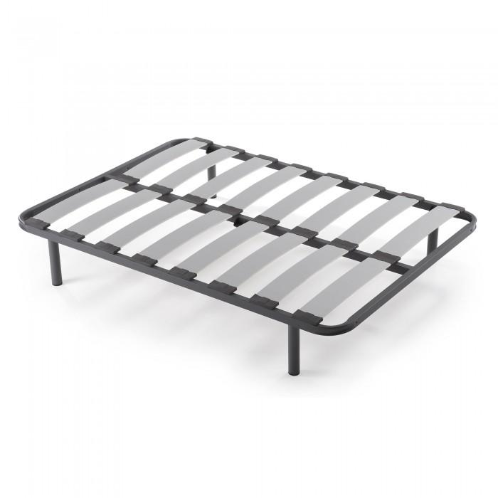 Somier con láminas en madera de abedul. Estructura en tubo de acero con pintura epoxy. Compatible con patas X (no incluidas). Recomendamos 5 patas para medidas supériores a 105 cm. Consultar para otras medidas.