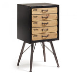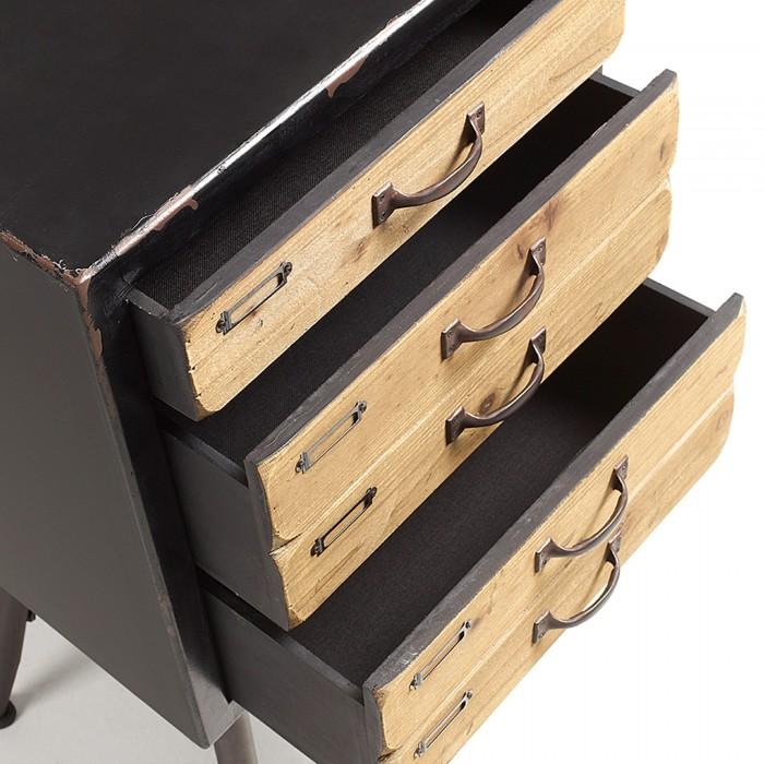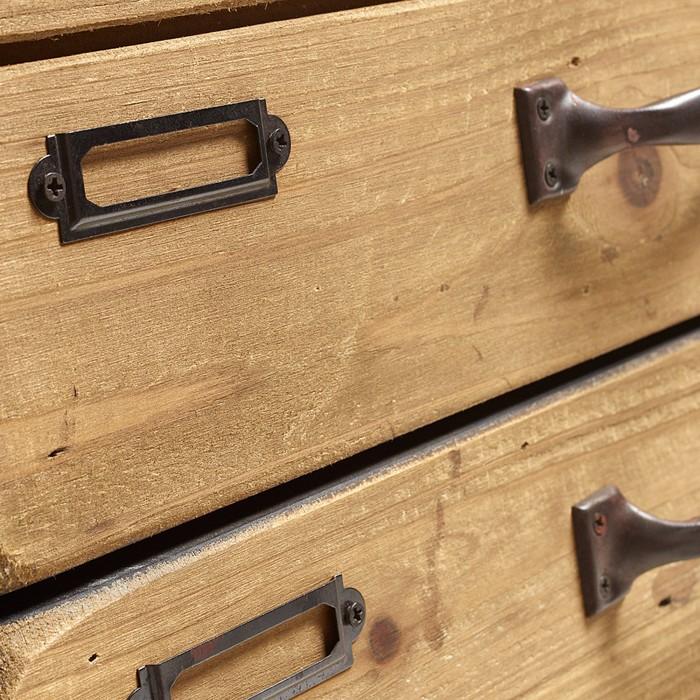 Una cómoda de marcado estilo industrial realizada en madera de abeto en acabado envejecido con pies de metal. Te encantará si eres un amante de lo Factory.
