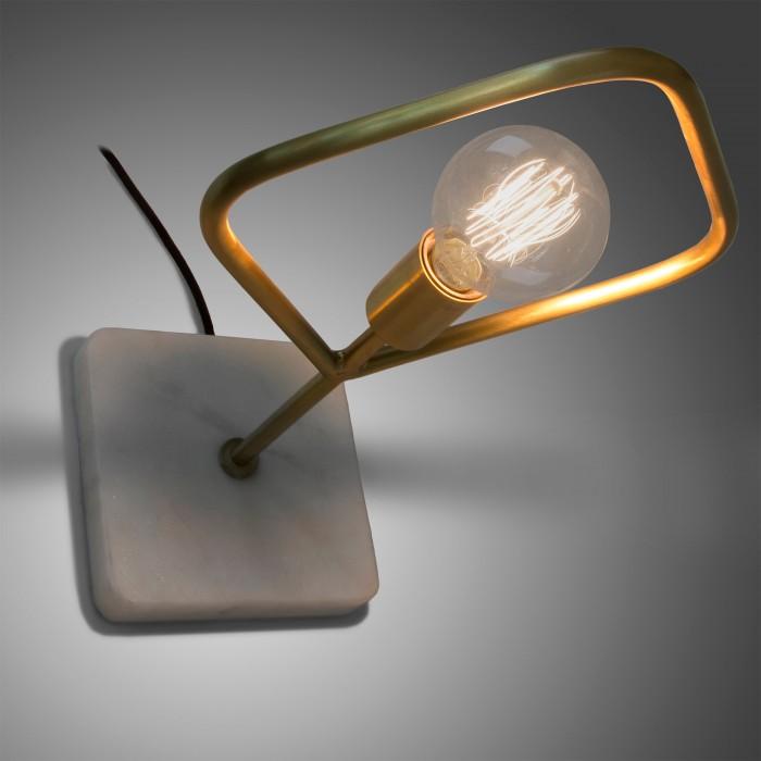Lámpara de sobremesa con base de mármol blanco y marco en latón mate. Para bombilla E14 no incluida.