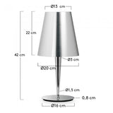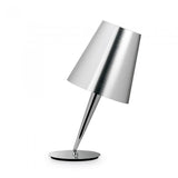 Lámpara de sobremesa articulada. Pantalla y pie de metal cromado. Para bombilla E14 ( no incluida).