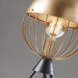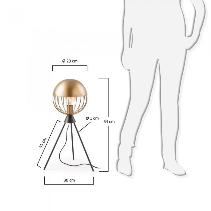 Lámpara de sobremesa con pantalla de varillas metal. Pie de tripode. Para bombilla E27 no incluida.