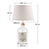 Lámpara de sobremesa con pie de cristal. Pantalla en algodón. Para bombilla E14 no incluida.