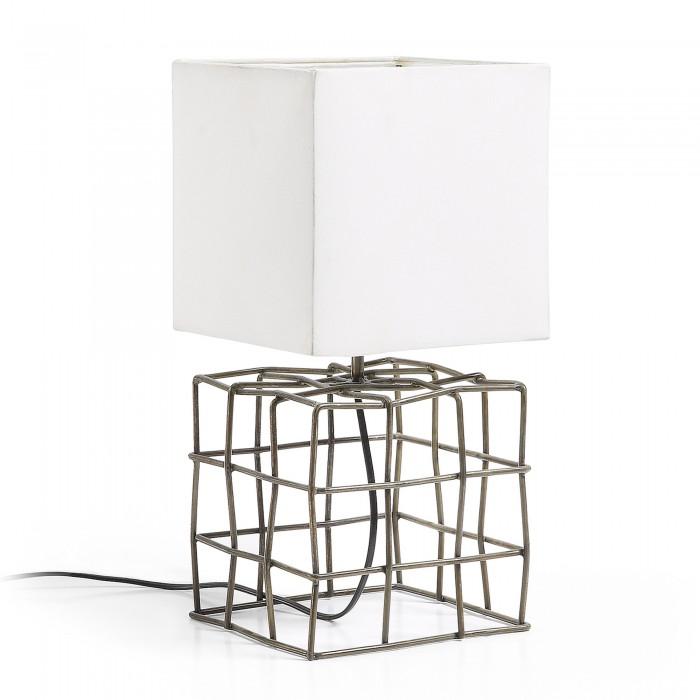 Lámpara de sobremesa con base de varilla de metal en acabado envejecido. Para bombilla E27 no incluida.
