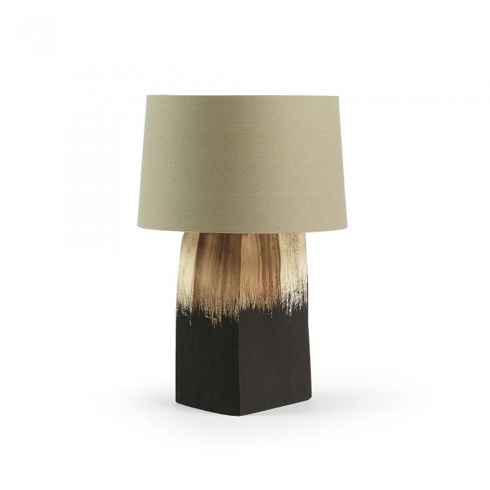 La base de esta lámpara de sobremesa, elaborada en madera tropical con una parte pintada, confiere a esta pieza una personalidad sin igual. De aires naturales y fuerte carácter, se convertirá, sin duda, en la protagonista del espacio.