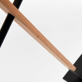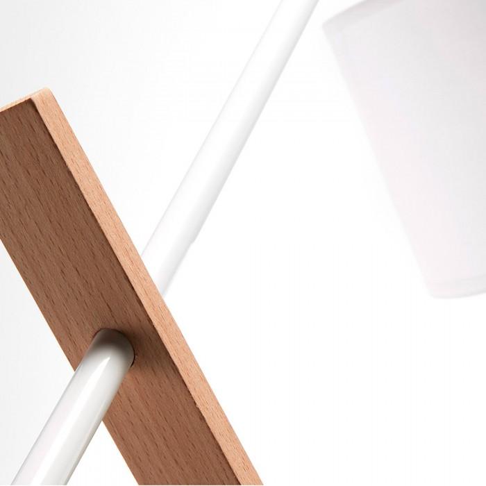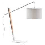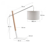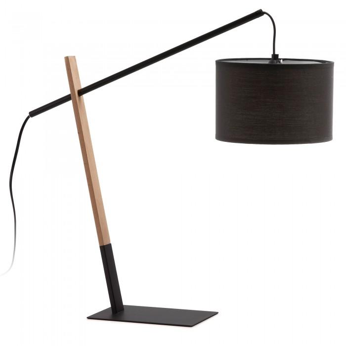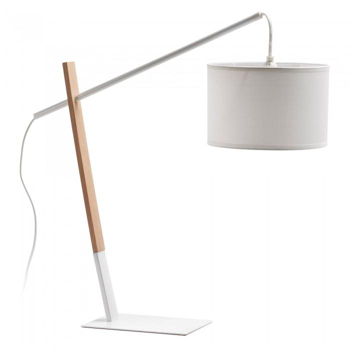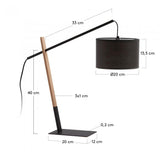 Lámpara de sobremesa con pie en madera y metal. Pantalla de algodón. Para bombilla E14 no incluida.