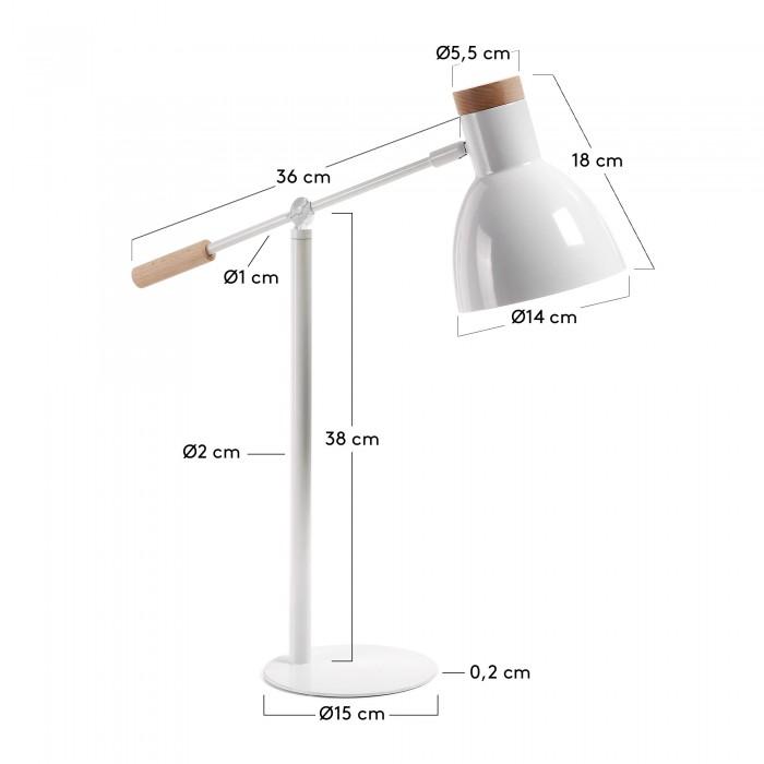 Lámpara de sobremesa en metal y madera con brazo articulado. Para bombilla E14 no incluida.