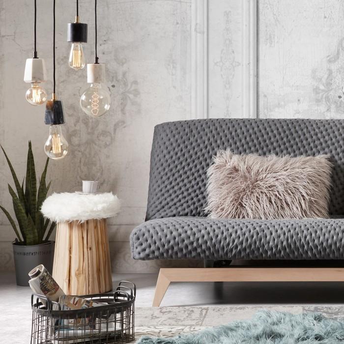 Sencillez y pureza son los adjetivos que mejor definen a este magnífico diseño lleno de contrastes. Esta lámpara de techo de aspecto ligero está realizada en parte en mármol blanco. Un binomio perfecto que deja la frágil bombilla como principal protagonista.
