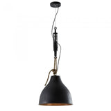 Lámpara de techo con pantalla de metal galvanizado color óxido. Suspensión con detalle de cuerda y metal. Para bombilla E27 no incluida.