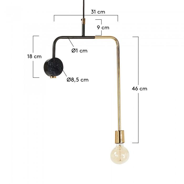 Lámpara de techo en acabado latón mate. Disco de mármol negro. Para bombilla E27 no incluida.