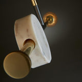 Las formas de esta lámpara de techo siguen el trazo de una línea y la estética gráfica de los años '60, de clara inspiración Memphis. Una pieza actualizada con detalles en brass, mármol y metal.