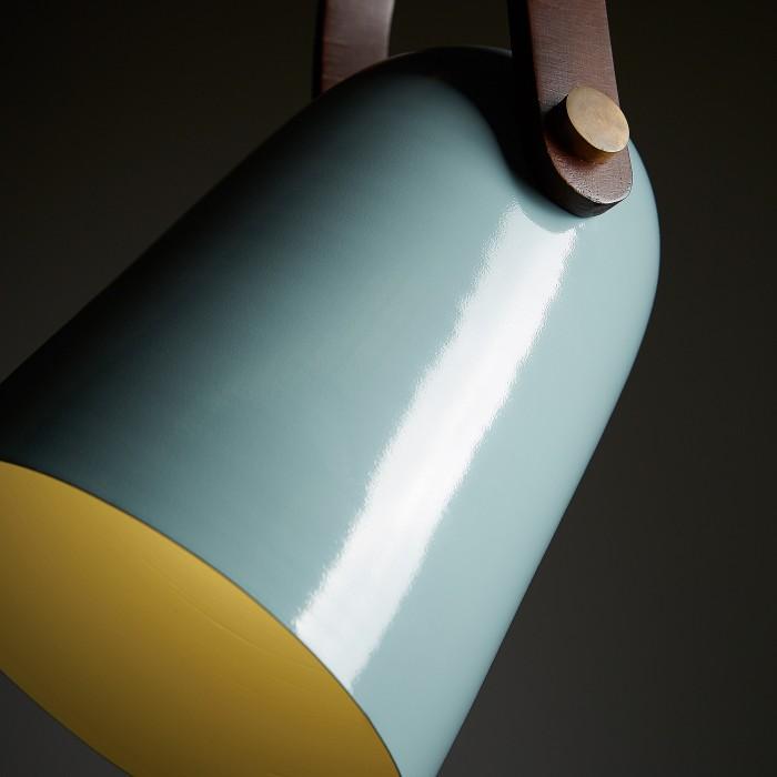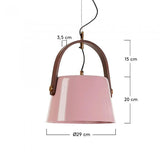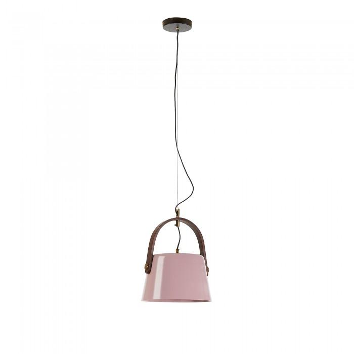 Lámpara de techo con pantalla de metal pintada. Asa de madera. Para bombilla E27 no incluida.