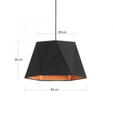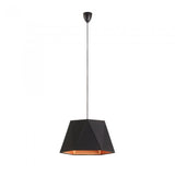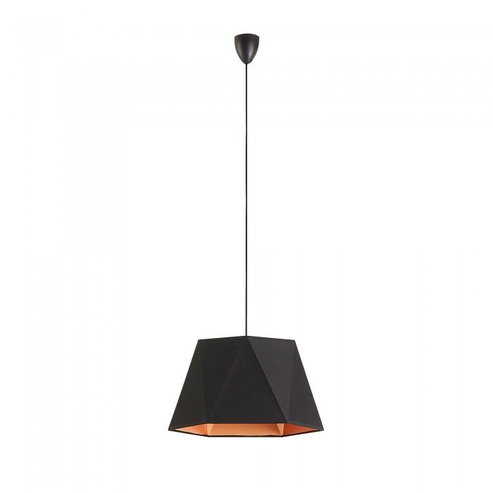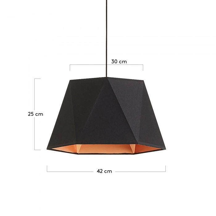 Lámpara de techo con pantalla en exterior de tela negra e interior cobre. Para bombilla E27 no incluida.
